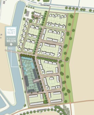 De 1e fase die in verkoop gaat betreft De Blauwe Wilgen, bestaande uit 19 woningen: