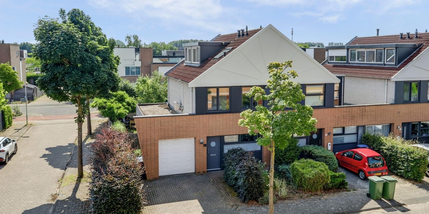 Dit is toch wel qua architectuur een van de leukste twee-onder-een-kapwoningen in Rijkerswoerd!