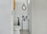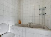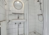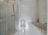 Je komt binnen via een ruime hal met garderobehoek, toilet en meterkast. Vanuit hier heb je toegang tot een grote slaapkamer met vaste kast en een eigen badkamer met douche, ligbad, wastafel en een tweede toilet.