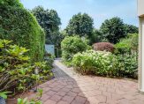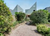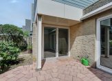 De tuin ligt op het westen, dus je kunt hier ’s middags en ’s avonds volop van de zon genieten. Een bestraat pad slingert tussen het groen door naar een stenen terras achterin: de perfecte plek voor een gezellige zithoek of om buiten te eten.