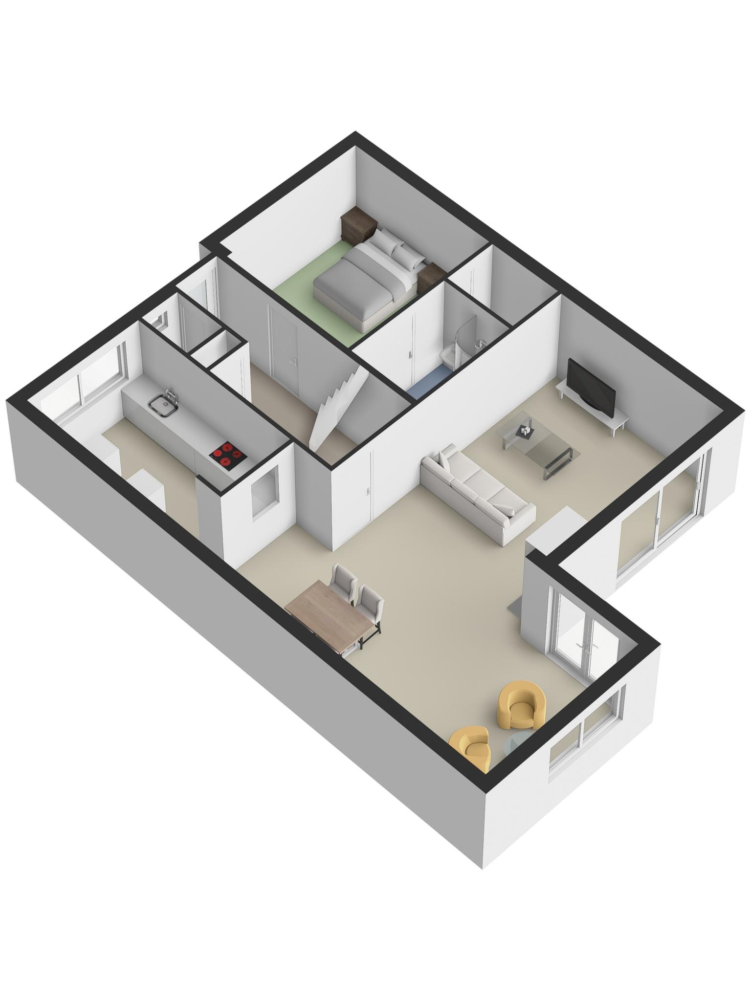 Deze verdieping biedt volop ruimte om je spullen op te bergen en is ook ideaal voor een compact bureau om rustig te werken of je even terug te trekken.