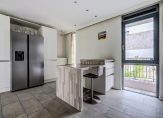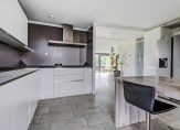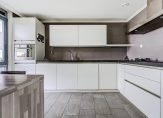 De open keuken heeft witte, greeploze kastjes en een zwart granieten aanrechtblad. De keuken is ruim opgezet en voorzien van een geïntegreerde keukentafel, zodat je altijd gezellig kunt aanschuiven als er gekookt wordt. Van alle gemakken voorzien: kookplaat, gasfornuis, afzuigkap, combi-oven/combimagnetron, vriezer, koel-vriescombinatie en een vaatwasser uit 2020.