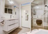 Er zijn vier prettige slaapkamers, waarvan drie met ingebouwde kasten. De twee badkamers zijn praktisch ingedeeld: één met ligbad, douche, wastafelmeubel en toilet, en een tweede met douche en badkamermeubel. Daarnaast is er een apart toilet (altijd handig!) en een bergkast met de cv-ketel, waar je ook spullen kunt opbergen die je liever uit het zicht houdt.