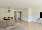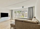 De ruime woonkamer biedt voldoende plek voor zowel een zit- als eetgedeelte en kenmerkt zich door een nette afwerking en chique binnendeuren. Grote raampartijen zorgen voor veel natuurlijk licht en de kamer beschikt over een handige ruime trapkast.