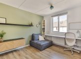Op de eerste verdieping tref je twee ruime slaapkamers aan en een derde slaapkamer die tevens als kantoor of kinderkamer gebruikt kan worden. Eén van de slaapkamers is voorzien van extra luxe en comfort door middel van USB stopcontacten en een hotelschakelaar bij de nachtkastjes. De houten laminaatvloer van beneden loopt door naar boven, wat zorgt voor een nette en consistente uitstraling.