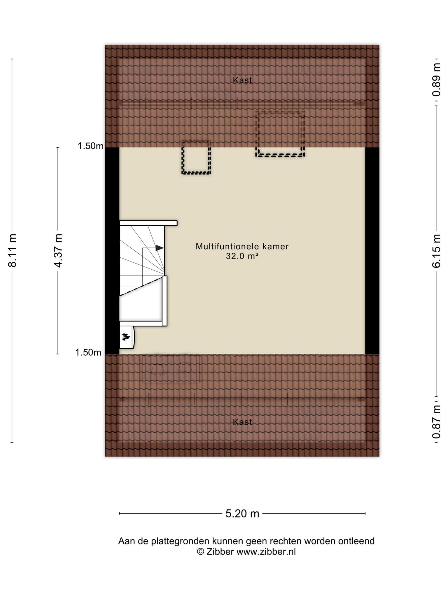 De zolder is vrij indeelbaar met een oppervlakte van maar liefst 32m². De zolder is keurig afgewerkt en biedt ruimschoots plaats aan bijvoorbeeld één of twee extra slaapkamers. Tevens bevindt zich hier de opstelling voor witgoed en de cv-ketel.
