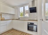 De afgescheiden keuken is strak en modern, voorzien van greeploze keukenkasten en diverse inbouwapparatuur. Met een inductieplaat, afzuigkap, oven, koel-vriescombinatie en vaatwasser, biedt deze keuken alles wat je nodig hebt. De aanwezige lades en kastjes zorgen voor slimme opbergmogelijkheden, zodat je altijd voldoende ruimte hebt voor al jouw keukengerei.