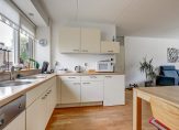De woonkamer is licht en ruim opgezet, met voldoende plek voor een gezellige zit- en eethoek. De open keuken sluit hier mooi op aan en is voorzien van een inductiekookplaat (2023), afzuigkap, koelkast, oven en vaatwasser. Extra opbergruimte vind je in de trapkast.