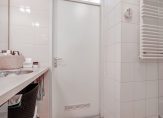 De indeling is ideaal voor wie nu of in de toekomst gelijkvloers wil wonen. Op de begane grond vind je een slaapkamer met uitzicht op de achtertuin en een badkamer met inloopdouche, designradiator en dubbele wastafel met grote spiegel, terwijl het toilet apart is geplaatst voor extra comfort en gemak.