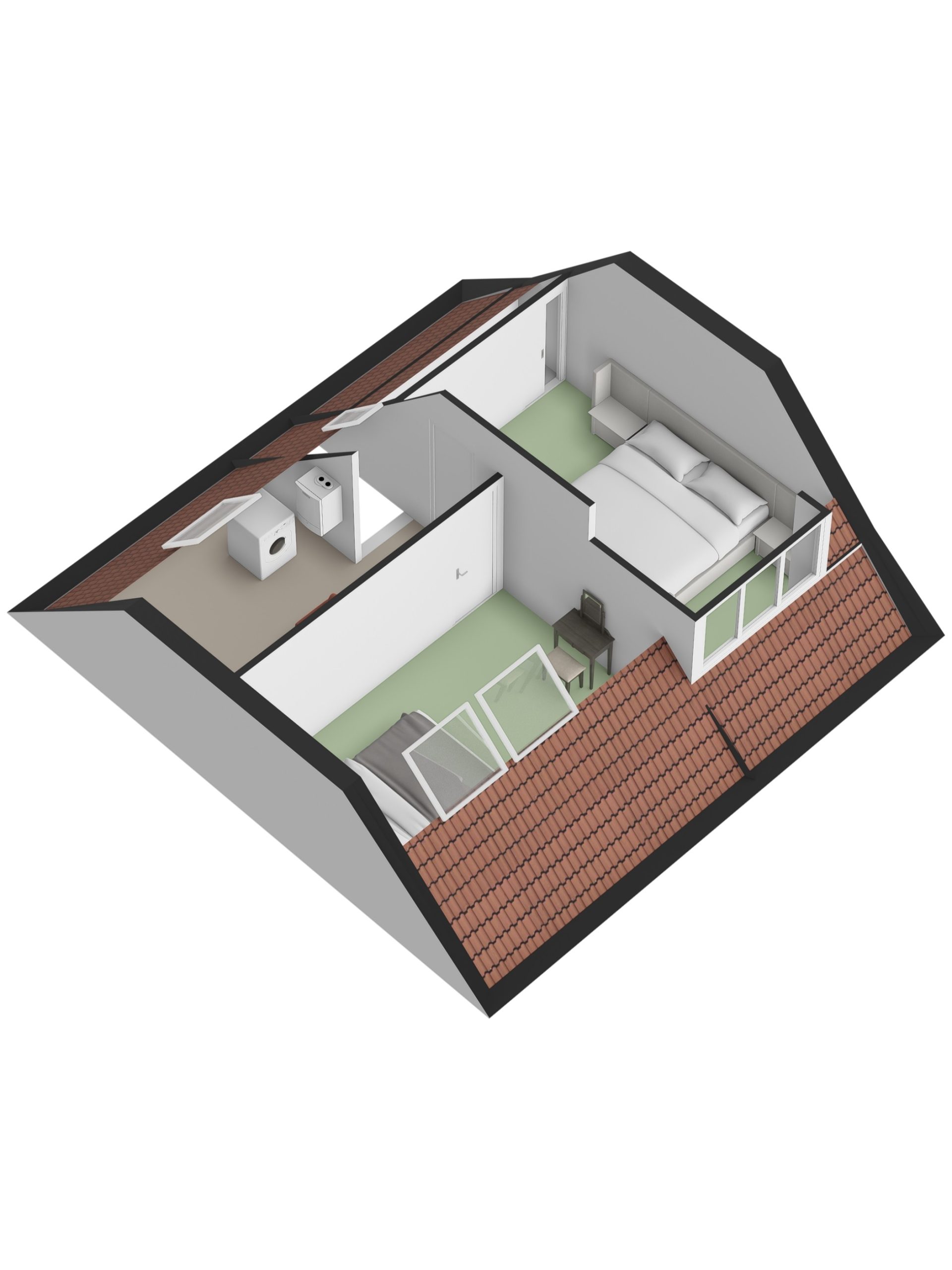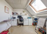 Op de ruime overloop bevinden zich de cv-ketel en de wasmachineaansluiting. Door het brede dakraam komt hier veel licht binnen. Verder zijn er twee ruime slaapkamers, waarvan één met een dakkapel en ingebouwde kasten en schotten.