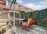 De achtertuin is een heerlijke plek om even helemaal tot rust te komen. Met ongeveer 77 m² is er genoeg ruimte voor een gezellig zitje of een loungehoek waar je lekker kunt ontspannen. Het groen geeft de tuin een rustige, sfeervolle uitstraling, terwijl de ligging op het zuidwesten zorgt voor veel zon in de middag en avond én regelmatig een prachtige zonsondergang. Liever wat schaduw? Met de zonwering maak je eenvoudig een koel plekje. Achterin de tuin staat bovendien een praktisch tuinhuis, ideaal voor het opbergen van tuinspullen.