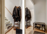 De voordeur zit op de eerste verdieping. Achter de deur kom je in een hal met garderobe en handige opbergruimte voor bijvoorbeeld schoenen. Vanuit de hal bereik je ook de trap naar de tweede verdieping.