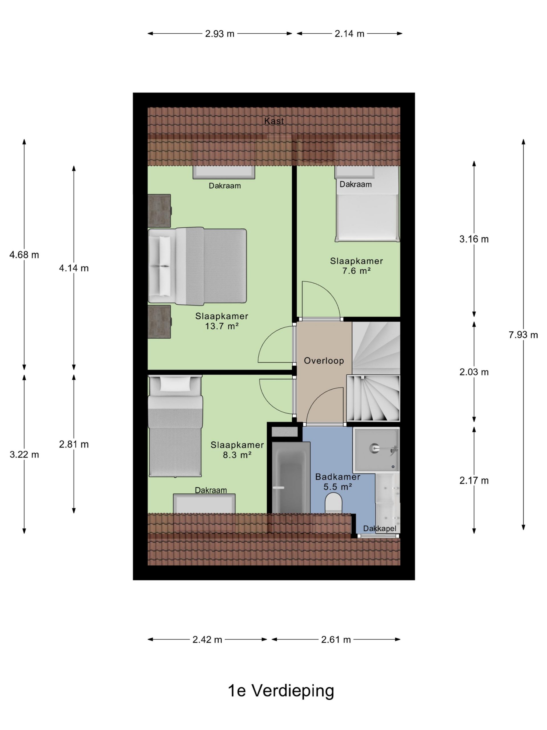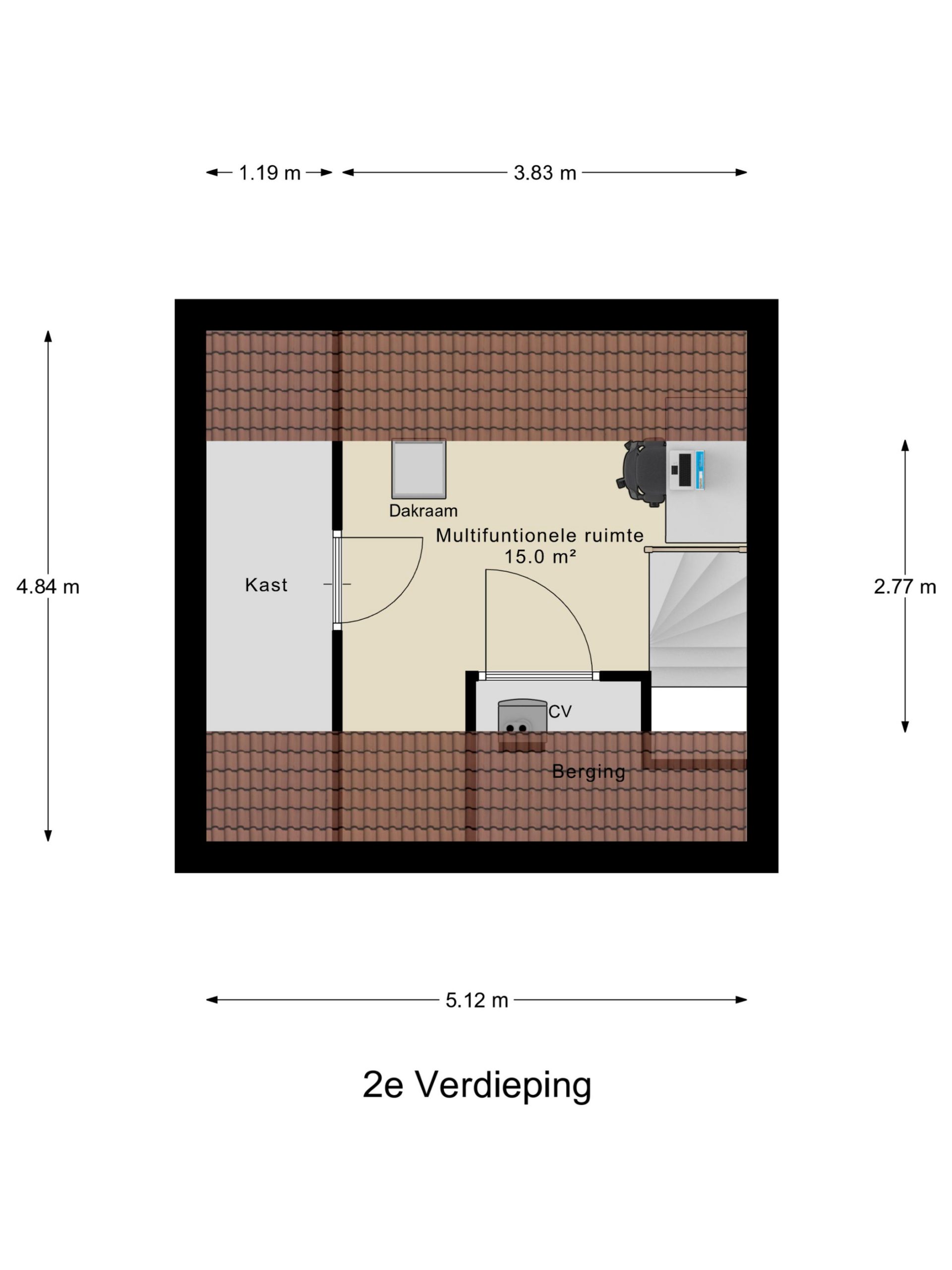 De zolder is een royale open verdieping die je op allerlei manieren kunt gebruiken: als logeerkamer, werkplek of speelruimte. Er is een ingebouwde kast en een aparte berging waar de cv-ketel (Vaillant) staat.
