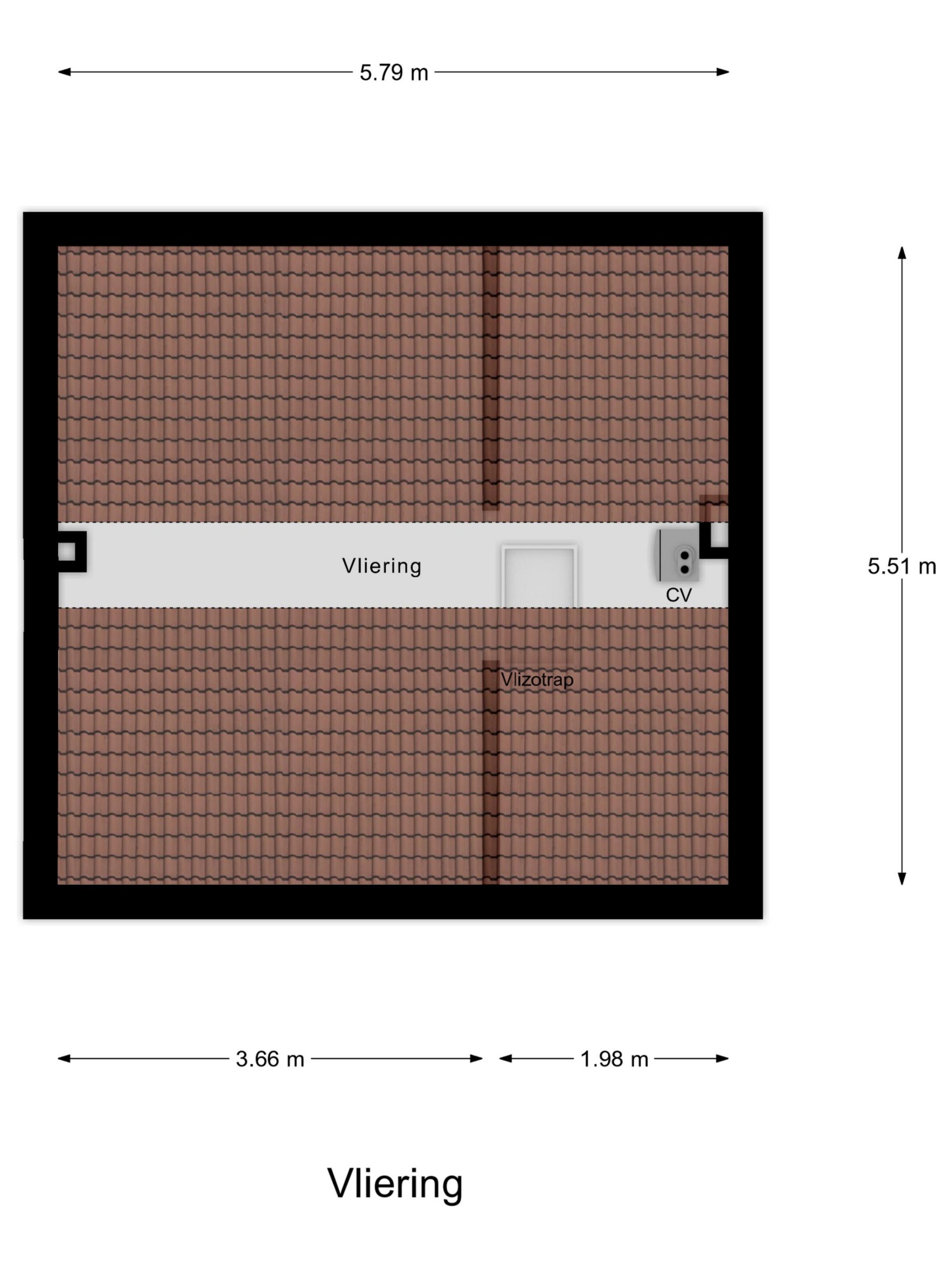 Via een vlizotrap bereik je de vliering, ideaal voor het opbergen van spullen die je niet dagelijks gebruikt. Hier bevindt zich ook de cv installatie. Een vaste trap maken is mogelijk.